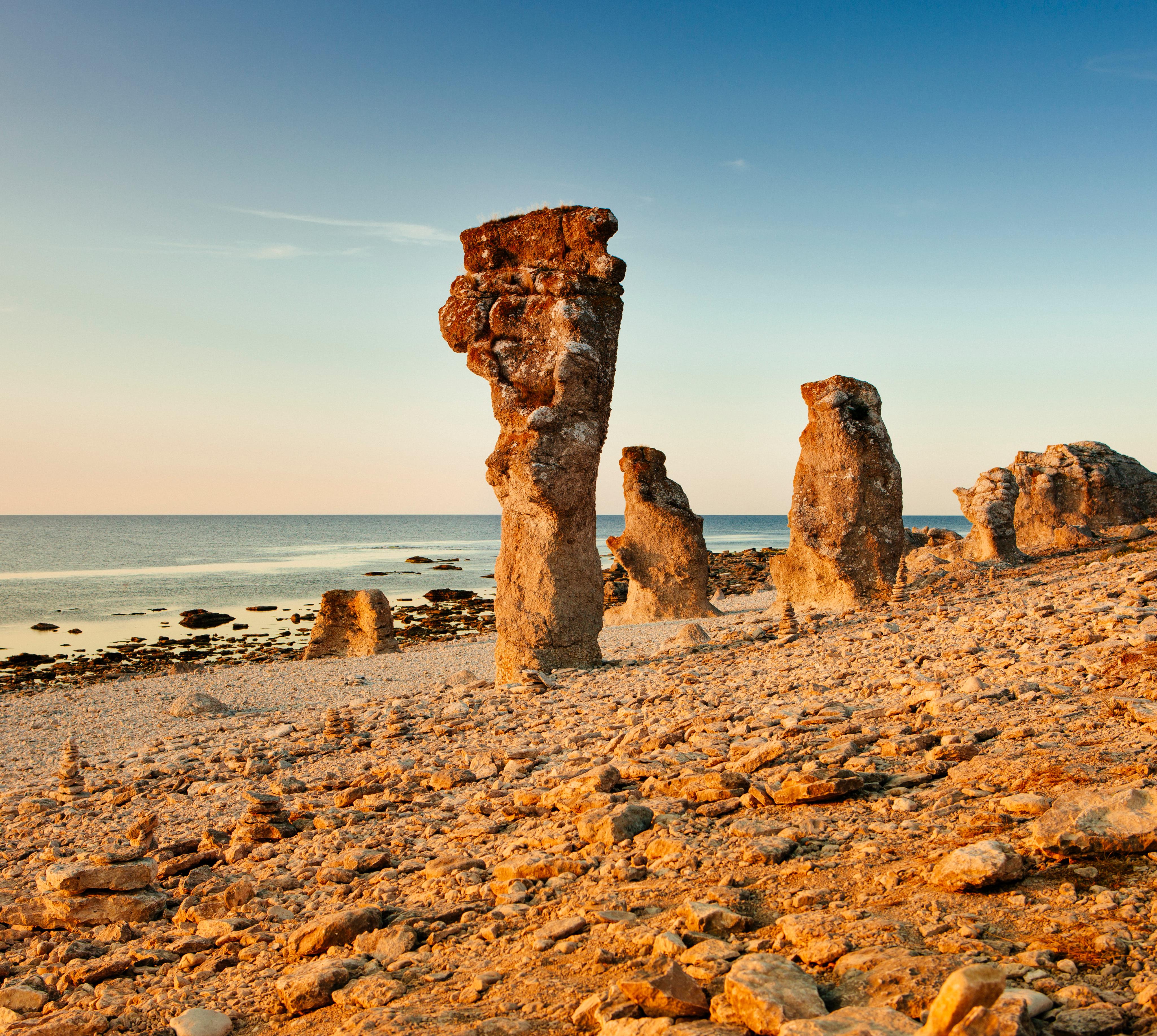 Die Felsformationen aus Kalkstein erhielten im Laufe der Jahrtausende durch Erosion ihre längliche Gestalt. Bei Lickershamn liegen einige der schönsten.