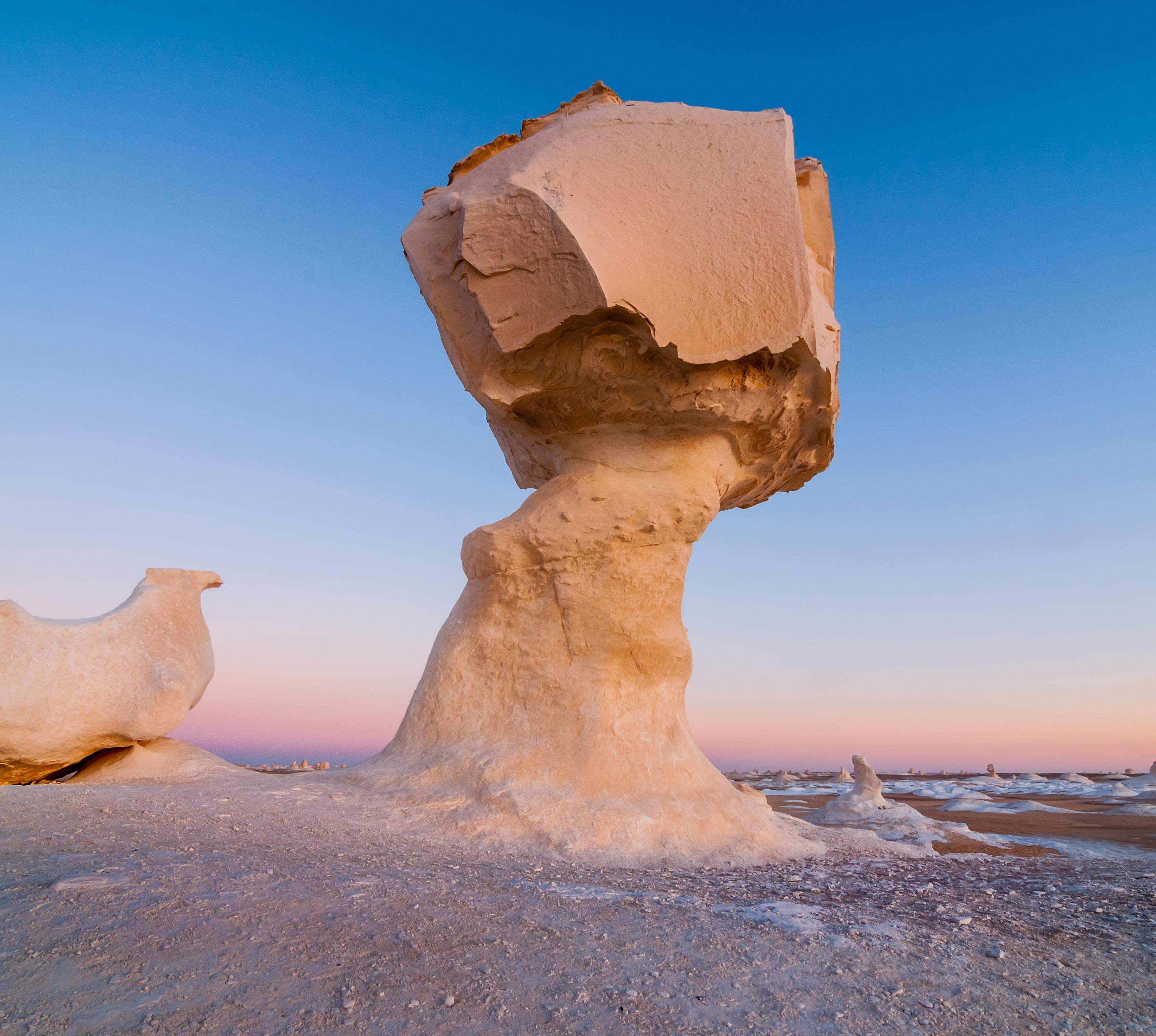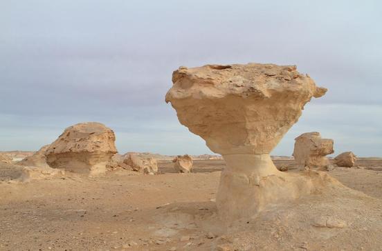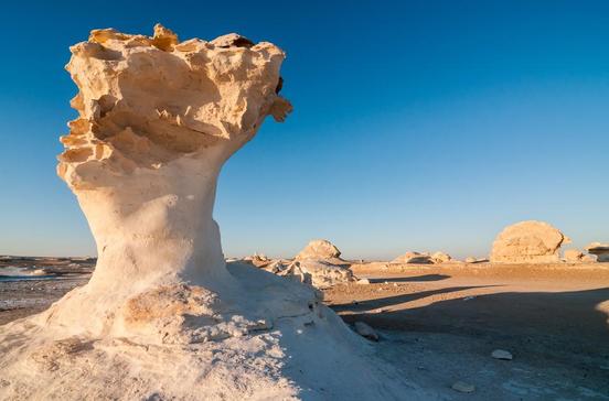 Das große Erlebnis einer Oasenrundreise ist eine Übernachtung in der Sahra Al-Beida, der Weißen Wüste, die 20 km nördlich von Farafra beginnt. Aus hellem Sandstein entstanden durch Winderosion magische Skulpturen, die mal wie gigantische Pilze, mal wie Gnome aussehen. Bei Vollmond wirkt die dann fast weiße Landschaft wie elektrisiert. Bei Sonnenaufgang scheint sie in Bewegung zu geraten und wechselt ständig die Farben. Hier gilt, wie übrigens in allen Oasen: Ausflüge nie ohne einen sachkundigen Begleiter unternehmen! Touren organisiert das Rahala Safari Hotel.