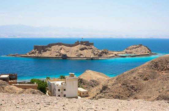 Die Pharaoneninsel befindet sich 10 km südlich von Taba 250 m vor dem Ufer. Auf ihr steht eine malerische Kreuzfahrerburg aus dem 12.Jh. Salah Al-Din (Saladin) eroberte sie 1170 von den Kreuzrittern und baute sie um und aus.