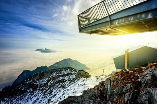 Zwei 3 m breite Stahlarme, die ein "X" bilden, ragen vom Osterfelderkopf (2080 m) 13 m weit ins Nichts - vor dem Besucher befindet sich eine Glaswand, darunter 1000 m Abgrund. Die Aussichtsplattform oberhalb der Bergstation der Alpspitzbahn ist umstritten. Wer einen ordentlichen Adrenalinschub sucht, wird sich aber nicht beirren lassen.