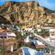 Weiß gekalkte Schornsteine ragen aus der braunen Landschaft, Häuserfassaden kleben an Felsen: An die 1300 Höhlenwohnungen verteilen sich über den Stadtteil Santiago in Guadix. Folg der Beschilderung "Barriada de Cuevas".