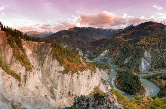 Vor 10 000 Jahren stürzten 8000 Kubikmeter Geröll in den Rhein: Der größte Bergsturz in der Geschichte der Alpen! Seitdem hat der Rhein ein Tal ins Geröll gefressen, das es mit den besten Canyons dieser Welt aufnehmen kann. Weiße hohe Felswände, riesige Findlinge im schäumenden Fluss. Fürs Auto ist in der Ruinaulta genannten Schlucht kein Platz. Stattdessen: wandern, etwa ab dem Bahnhof Versam-Safien. Im Frühjahr wachsen hier Orchideen.
