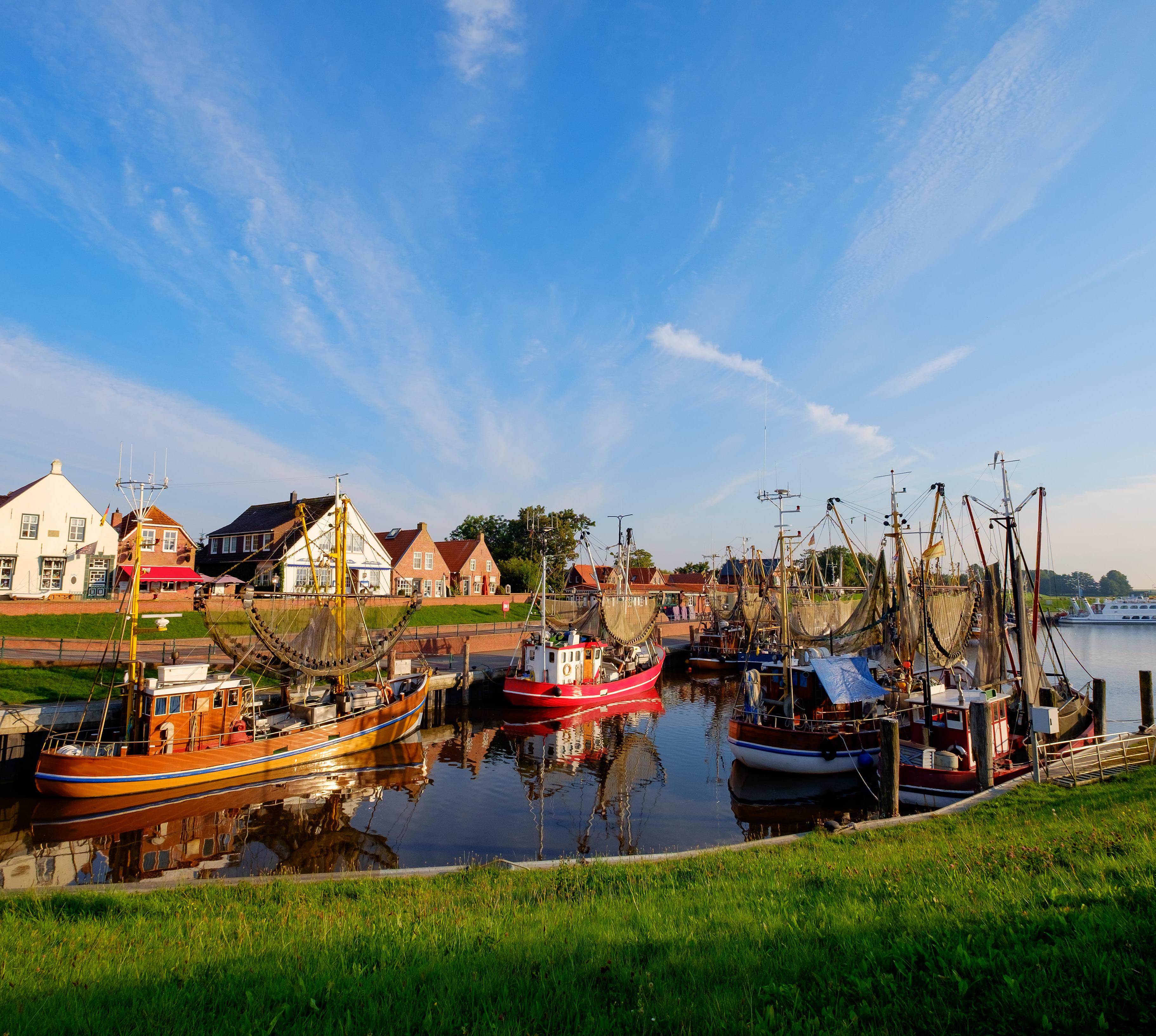 Jeden Tag tuckern die 25 Krabbenkutter vom Hafen aufs Meer hinaus. Dazu verleihen historische Häuserzeilen aus dem 17.und 18.Jh., mit Ziegelsteinen gepflasterte, fast autofreie Straßen, interessante Läden und niveauvolle Restaurants Greetsiel eine romantische Atmosphäre. Auf den Wasserläufen, die ins Hinterland führen, kann man Tretboot und Kanu fahren. Der Ort ist im Sommer am Wochenende oft komplett überlaufen. Lieber unter der Woche besuchen!