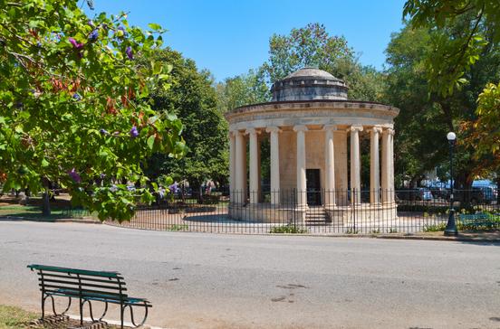 Die weitläufige Esplanade ist der Mittelpunkt allen sozialen und geselligen Lebens, Schauplatz der allabendlichen vólta, des traditionellen Flanierens, und gelegentlicher Militärparaden sowie Treffpunkt für Jung und Alt, Einheimische und Urlauber. Die Venezianer schufen sie im 17.Jh. Bis dahin hatten die Häuser der Stadt noch unmittelbar bis an die Alte Festung herangereicht. Das Militär ließ sie abreißen, um im Falle einer Belagerung freies Schussfeld zu haben. Später diente diese Grünfläche als Exerzierplatz. Heute wird auf dem Rasen Kricket gespielt. In den schattigen Parkanlagen steigt eine Fontäne auf. Eines der hier aufgestellten Denkmäler erinnert an die Vereinigung der Ionischen Inseln mit dem freien Griechenland im Jahr 1864.Es zeigt sieben Bronzereliefs mit Symbolen der sieben Hauptinseln. Für Korfu ist es das Schiff der Phäaken, jenes sagenhaften Volks, das nach Homer einst auf Korfu lebte und Odysseus mit einem Schiff zurück in seine Heimat Ithaka brachte. Die Westseite der Esplanade wird von hohen, noch heute bewohnten Häusern aus dem frühen 19.Jh. gesäumt. Unter deren Liston genannten Arkaden sitzt du gut in den kleinen Sesseln der Cafés - allerdings auch ziemlich teuer.