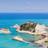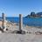 Zum Sonnenbad in die Kirche? Gegenüber vom kleinen Inselchen Kastrí ist es möglich. Da kannst du deine Strandmatte zwischen Säulen und 1500 Jahre alten Mauern ausrollen und bist schon zehn Schritte weiter im Wasser. Italienische Archäologen haben einige Säulen restauriert und wieder aufgerichtet – die meisten davon sind jedoch erneut umgefallen. Man erkennt noch den Grundriss des dreischiffigen Baus. An die Nordwand angelehnt stand eine zweite, kleinere Basilika mit einem noch immer sehr gut erhaltenen, kreuzförmigen Taufbecken im Boden. Hier gefundene Bodenmosaike wurden wieder mit Kies bedeckt.
