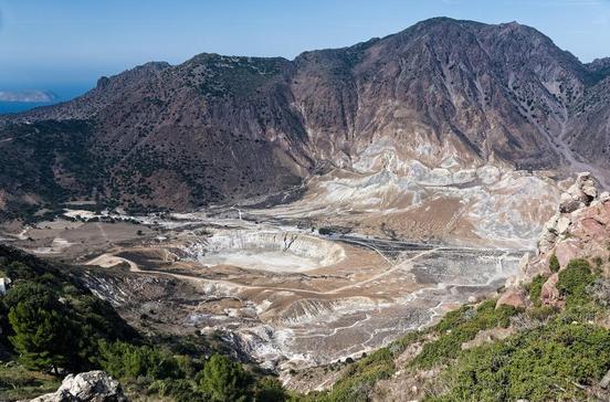 Níssiros ist ein aus der Ägäis aufsteigender Vulkan mit einem 3500 m langen und 1500 m breiten, vollständig erhaltenen Krater, in dem Schlammlöcher blubbern und Schwefeldämpfe aufsteigen. Eine Asphaltstraße führt ins Zentrum des Kraters hinunter. Auf dem Kraterrand liegen die beiden weißen Dörfer Nikiá und Emboriós. Von Nikiá mit einem kleinen, modern gestalteten Vulkan-Museum kann man auf den Kratergrund hinab wandern. Den romantischen Hafen- und Hauptort Mandráki mit kleinem Archäologischem Museum und einem der intimsten Dorfplätze der Ägäis überragt die Ruine einer Kreuzritterburg.