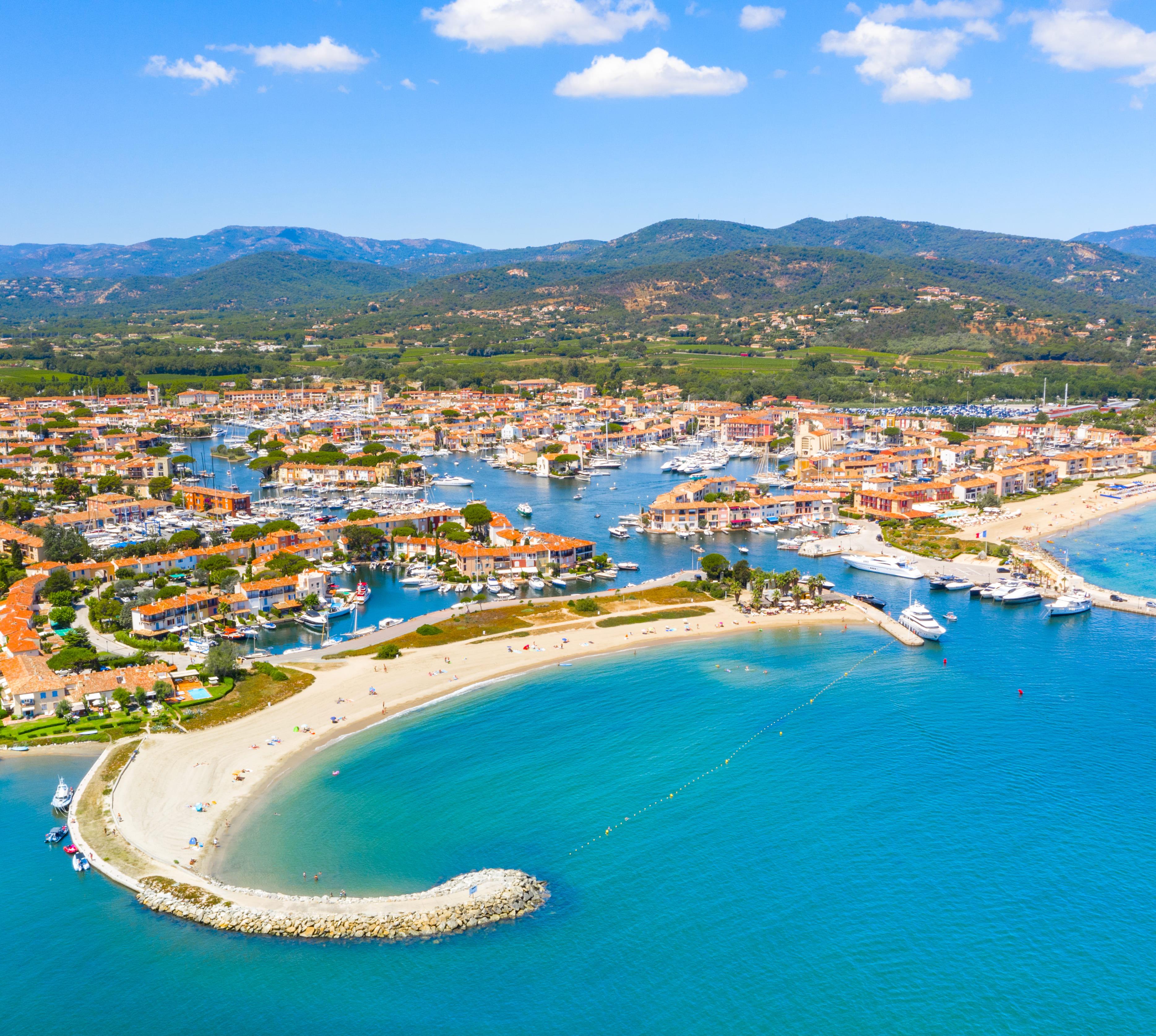 Ein Feriendorf aus der Retorte mit Kanälen, Brücken und bunten Häusern. François Spoerry verwirklichte 1966 in einem Sumpfgebiet im Zentrum der Bucht von Saint-Tropez (ca. 6 km entfernt) ein damals heiß diskutiertes Konzept für umweltverträglichen Tourismus. Ein seltenes Beispiel dafür, wie sich Neubauten nicht unbedingt störend in die Landschaft einfügen. Und wo gibt es sonst noch kleine Häfen mit Kanälen, in denen die Bewohner ihr Boot direkt vor der Haustür parken können? Die Patina der Jahre tut dem Ort gut. Besucher müssen ihr Auto auf einem Parkplatz im Norden der Siedlung abstellen.