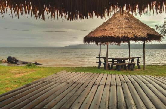 Auf dem schönen, 4 km langen weißsandigen Strand herrscht kaum Gedränge, obwohl es hier ein paar Ferienresorts gibt.