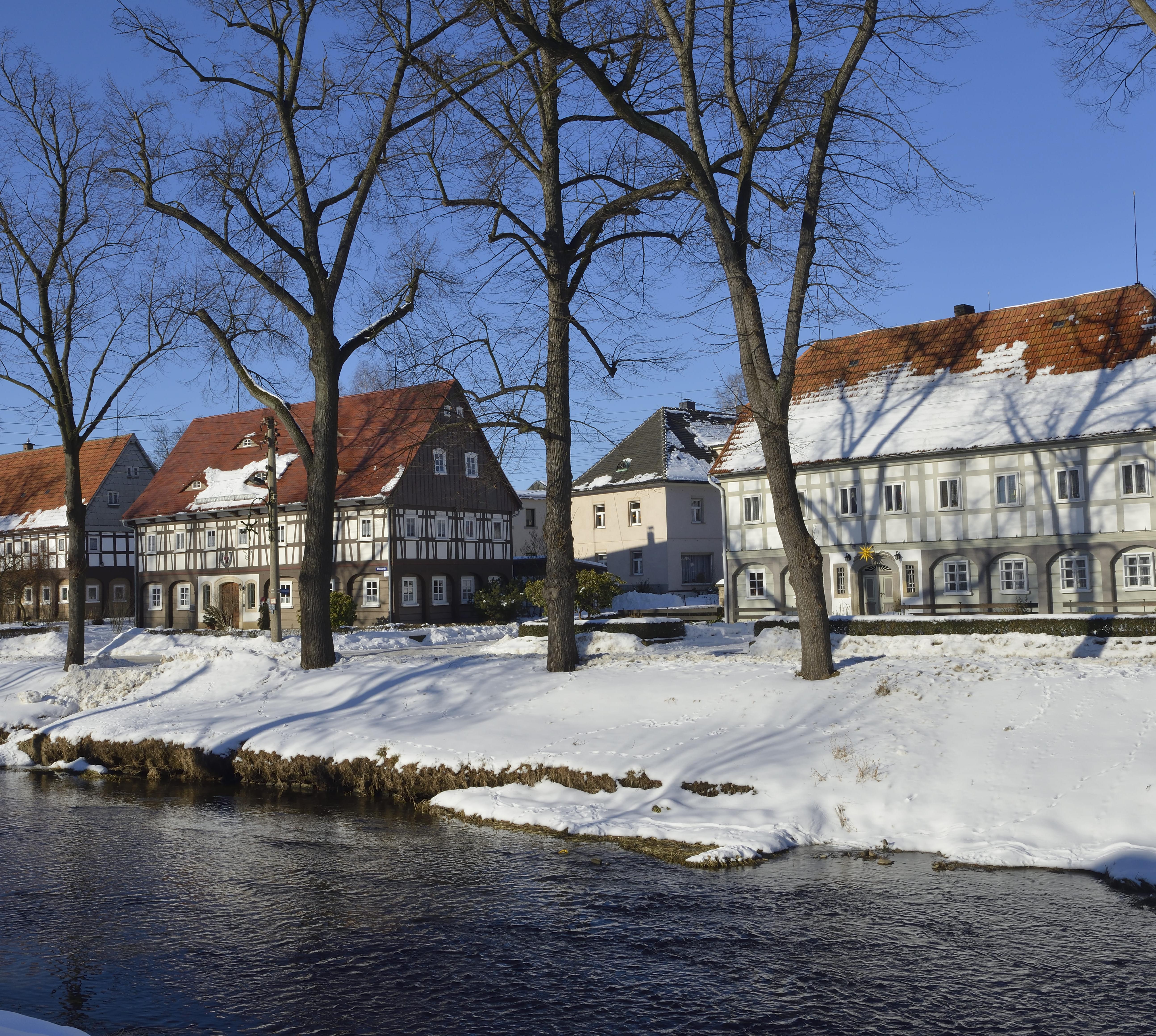 Landschaftlich schön gelegener Ort (6200 Ew.) am Fuße des Zittauer Gebirges: Prächtige Umgebindehäuser, vor allem beiderseits der Mandau, bestimmen mit Eichen, Linden und Eschen das Bild.