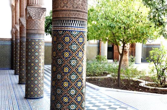 Die schönste Koranschule des Landes wurde im 14.Jh. gegründet. Ihre heutige Gestalt jedoch erhielt sie unter den Saadiern im 16.Jh. Der beeindruckend große und wunderschöne Innenhof mit Brunnen hat Bodenfließen aus Carrara-Marmor. Die Wände sind mit aufwendigen Kachelornamenten und arabischen Schriftzügen verziert, mit Stuckkapitellen und im oberen Bereich mit feinst gedrechselten Zedernholzarbeiten versehen. An den Innenhof schließt ein kleiner Gebetsraum an. Sehenswert sind auch die Studierzimmer im oberen Bereich der Koranschule sowie das alte Hammam, wo heute auch die Toiletten untergebracht sind (sehenswert und sauber!).