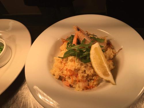 Das Restaurant bietet so viele regionale Produkte wie möglich, darunter Rind- und Schweinefleisch von der Meadow Croft Farm sowie Meeresfrüchte aus der Region. Es gibt eine häufig wechselnde Auswahl an Real Ales.