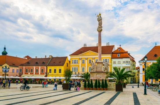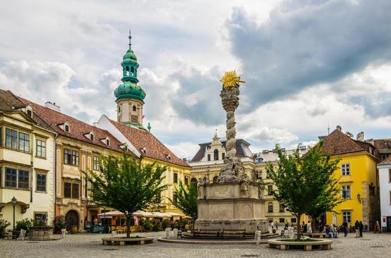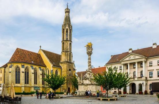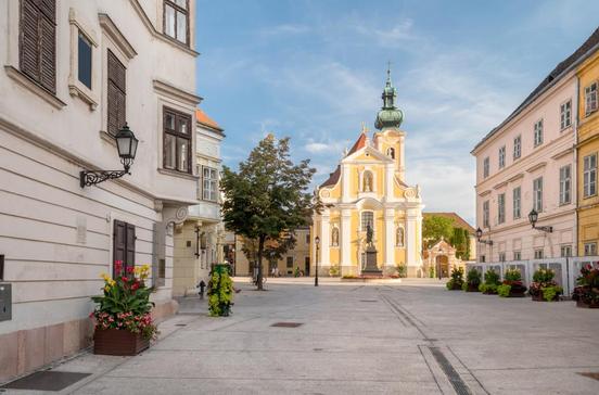 Der Széchenyi-Platz ist das Herz der alten Bürgerstadt. In der Mitte erhebt sich die barocke Mariensäule. Die Fresken in der St.- Ignatius-Kirche (Szent Ignác templom) und das Bild des Hochaltars schuf der Barockmaler Paul Troger im Jahr 1744.