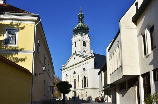 Der Dom gegenüber der Bischofsburg hat eine fast 1000-jährige Baugeschichte. Im 18.Jh. gab Bischof Ferenc Zichy den Umbau im Barockstil in Auftrag. Der österreichische Maler Franz Anton Maulbertsch schuf die Fresken, die Tafelbilder und das Altargemälde. An der Südseite liegt die im 14.Jh. erbaute gotische Kapelle mit dem Reliquienschrein des hl. Ladislaus und dem Grabmal des Märtyrerbischofs Vilmos Apor (1892-1945). Er wurde erschossen, weil er Frauen, die in die Bischofsburg geflüchtet waren, vor Übergriffen durch russische Soldaten schützen wollte.