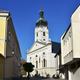 Die dreischiffige, im 13./14.Jh. erbaute gotische Kirche mit ihrem 43 m hohen Turm hat eine barocke Innenausstattung von 1750.Das Kloster neben der Kirche ist eines der schönsten gotischen Bauwerke der Stadt.