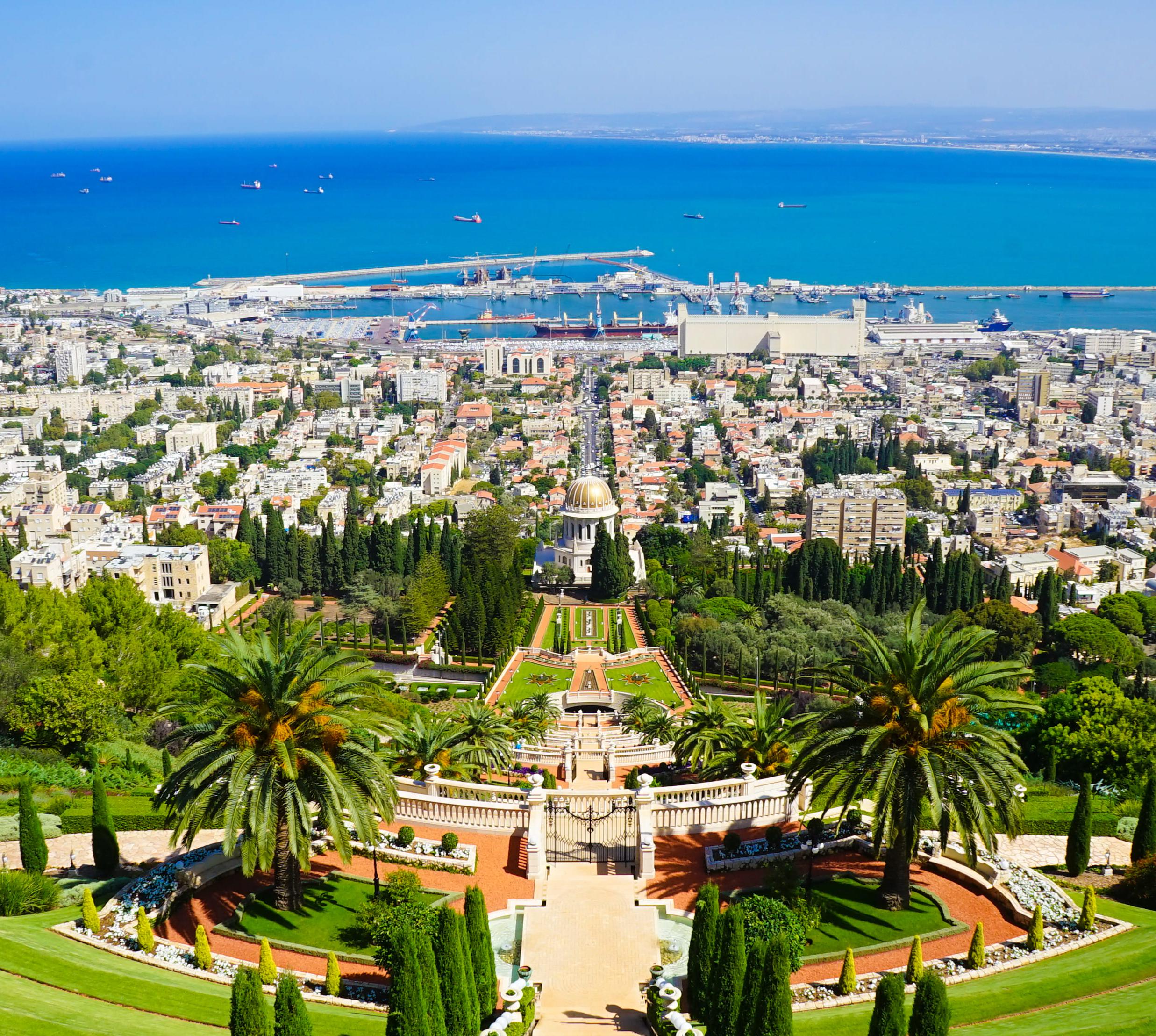Das 1953 vollendete, mit seiner goldenen Kuppel zum Wahrzeichen der Stadt gewordene Mausoleum des Bab, des in Persien 1850 hingerichteten Vorläufers von Baha’ullah, des Religionstifters der Bahais, liegt in einer wunderschönen Parkanlage, die seit 2008 UNESCO-Weltkulturerbe sind.