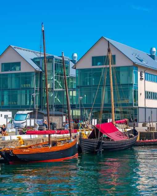 Gehst du gern fischen, solltest du auf jeden Fall einen Besuch in Falkenberg einplanen. Die gemütliche Kleinstadt (47 000 Ew.) mit ihrem mittelalterlichen Stadtkern und den Kopfsteinpflasterstraßen liegt nämlich an der Mündung des Ätran, einem der lachsreichsten Flüsse Schwedens. Angler brauchen eine Fischkarte, die es online oder im Touristenbüro gibt. In der Laxbutiken kannst du Lachsdelikatessen aller Art mitnehmen oder gleich probieren, z. B. den großen Lachsteller mit mariniertem, gekochtem und geräuchertem Lachs. Schöne weite, kinderfreundliche Sandstrände sind Skreastrand und Långasand.