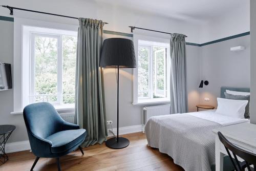 Das Landhaus Flottbek bietet Zimmer im Landhausstil mit einem Schreibtisch. Jedes Zimmer verfügt über ein eigenes Bad mit einem Haartrockner, einer Dusche und Pflegeprodukten.