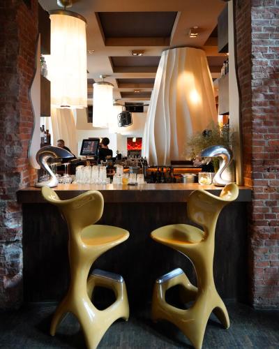 Im Restaurant haben Sie Blick auf den Innenhof des Hotels. Hier werden Ihnen internationale Gerichte und asiatische Spezialitäten serviert, darunter auch Sushi. Sie können im Restaurant an der großen Glasfassade oder bei Kerzenschein im Gewölbekeller der alten Eisengießerei speisen. In 2 Hotelfoyers oder an der Bar Yakshi’s können Sie bei einem Getränk verweilen.