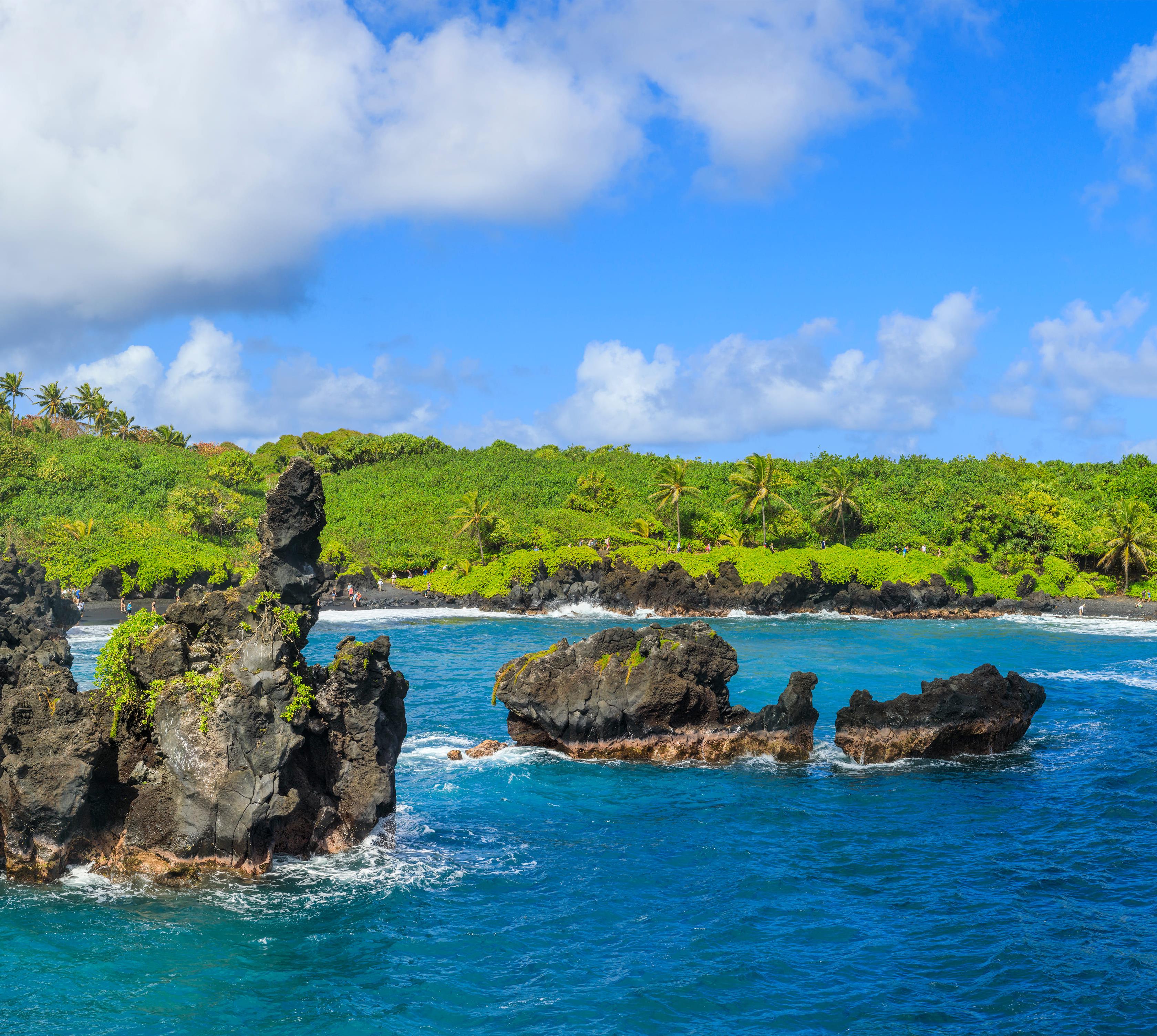 Königin Ka‘ahumanu, die Lieblingsfrau Kamehamehas I., wurde 1768 in Hana geboren. Sie war es, die nach dem Tod des Königs das alles beherrschende kapu-System abschaffte, das auf Tabus gründete. Bis heute ist ein hoher Prozentsatz der 700 Einwohner Hanas hawaiischer Abstammung, aber auch Beatle George Harrison lebte lange hier. Das kleine Hana Cultural Center (zeitweilig geschl.) oberhalb des schwarzen Strands an der Hana Bay dokumentiert mit alten Fotos und Quiltdecken die Geschichte der Region. Sehr sehenswert sind auch die weitläufigen Kahanu Gardens (Mo–Sa 9–15 Uhr | Eintritt 16 $ | ntbg.org) an der Ulaino Road. In grandioser Lage an der Küste gedeihen hier vor allem tropische Baumarten.