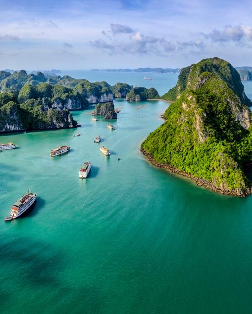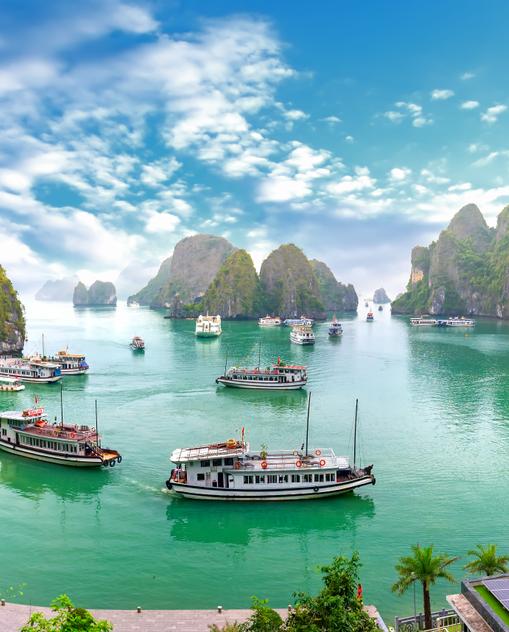 Heutzutage ist die Hauptstadt nicht zu bändigen, inklusive Bauboom und Wolkenkratzern. Aber noch versöhnen die vielen zauberhaften Gartenanlagen, idyllischen Seen und einige noch immer stille Winkel der Stadt. Der Norden steckt voller Naturwunder: Nur rund drei Fahrstunden von Hanoi entfernt ragen die dschungelig überwucherten Kalkfelsen der Ha-Long-Bucht aus dem Wasser – zweifellos einer der touristischen Hotspots in Vietnam. Auch Sa Pa verändert sich rasant und mit ihm die Bergvölker auf ihrer Zeitreise ins neue Jahrtausend. Man sollte sich die Schönheit und Authentizität der Region abseits des trubeligen Bergorts erwandern – durch eine Kulisse aus fotogenen Reisterrassen. Als immergrüner Tropenwald begeistert der Ba-Be-Nationalpark, der sogar fast noch ein echter Geheimtipp ist.