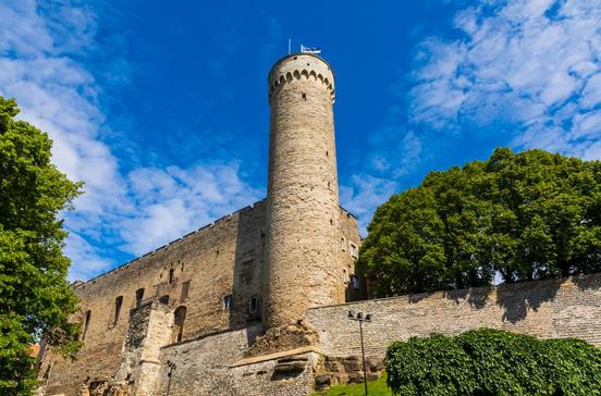 Der 48 m hohe Pikk Hermann (Langer Hermann) ist der schwere Eckturm der im 13.und 14.Jh. errichteten Burg. Sein Name stammt aus der mittelalterlichen Hermann-Sage. Auf seiner Spitze weht heute stolz die estnische Nationalflagge. Trotz ihrer Wehrhaftigkeit wurde die Burg - und damit Tallinn - im Lauf der Jahrhunderte verschiedentlich erobert. Insgesamt sind nur noch einige Mauern und Türme von der Burg erhalten geblieben.