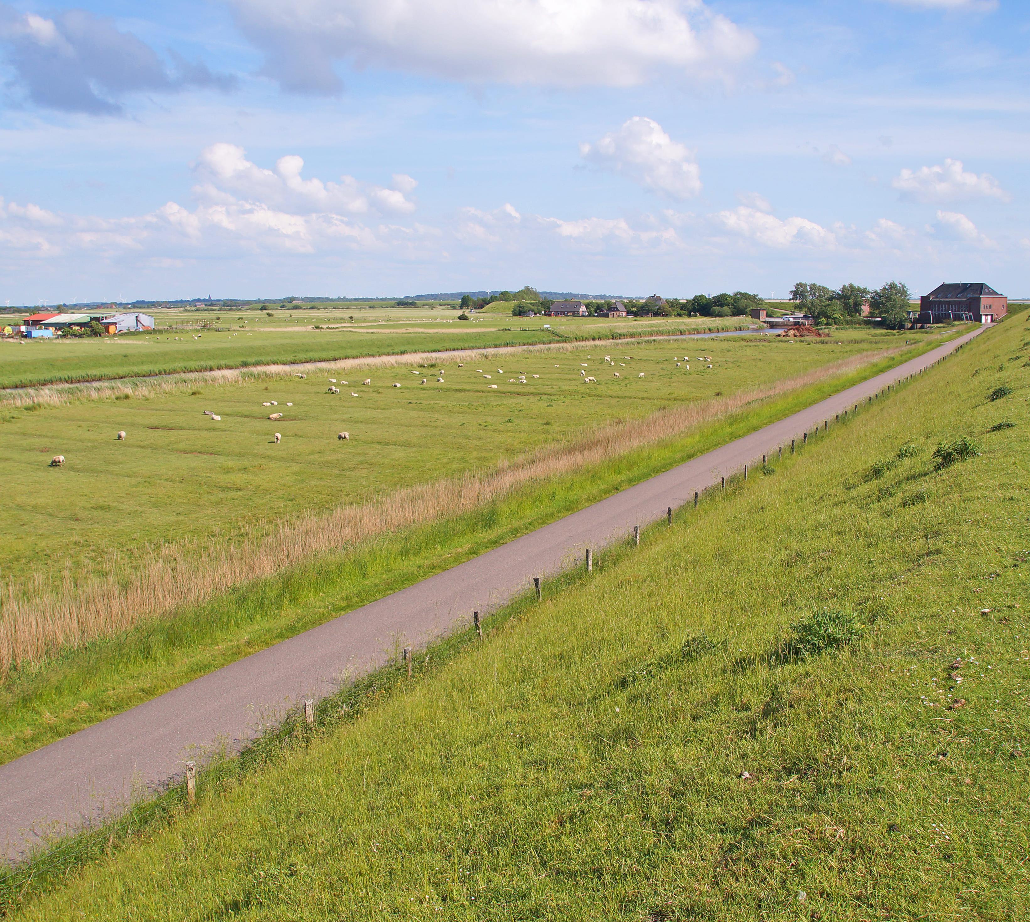 Südwestlich von Bredstedt mündet die Arlau in die Nordsee. Von der Schleuse aus kann man rund um den "Beltringharder Koog" radeln oder mit dem Kanu auf der Arlau paddeln.