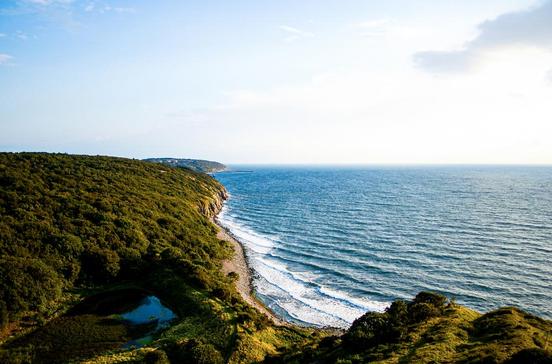 Das große Heidegebiet, das sich südlich von Hammershus bis kurz vor Vang hinzieht, ist das reinste Naturparadies. Eine Vielzahl an Wanderwegen (367ture.dk) führt hindurch. Entlang der steilen Küsten brüten Felsentauben und Silbermöwen. Doch die eigentlichen Stars sind die Alke, Seevögel, die wie Miniaturpinguine aussehen. Bis 1990 galt die einzige Vogelspinne Dänemarks, die Tapezierspinne, als ausgestorben – dann wurde sie hier wieder entdeckt. Sie ist samtbraun und kann bis zu 30 cm groß werden. Keine Angst: Für Menschen ist sie ungefährlich.