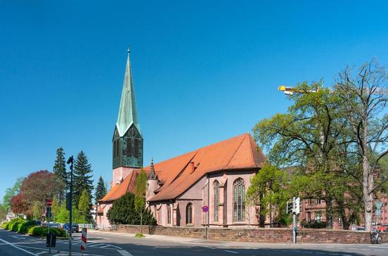 Die Pfarrkirche der Heidelberger Altstadt ist sogar älter als Heidelberg selbst – sie ist noch vor der Stadtgründung 1220 gebaut worden. Damals lag sie außen an der Stadtmauer (Grabengasse). Der mittelalterliche kleine Kirchhof und die um 1490 neugotisch erneuerte Kirche selbst galten bis ins 19.Jh. als vornehme Begräbnisstätten. Noch heute erinnern an den Innen- und Außenwänden der Kircheinsgesamt rund 150 Grabdenkmäler an Universitätsprofessoren und kurfürstliche Hofleute. Eine Ehrentafel ist der Humanistin Olympia Fulvia Morata gewidmet. Die italienische Wissenschaftlerin galt als eine der hochgebildeten Frauen ihrer Zeit; sie starb 1555.