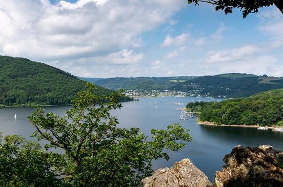 Am Ufer der Rurtalsperre können Besucher im mediterranen Flair baden oder im ersten Beachclub der Eifel Flammkuchen essen und Cocktails schlürfen.Der hier aufgestaute Rurstausee ist einer der größten Stauseen Deutschlands.