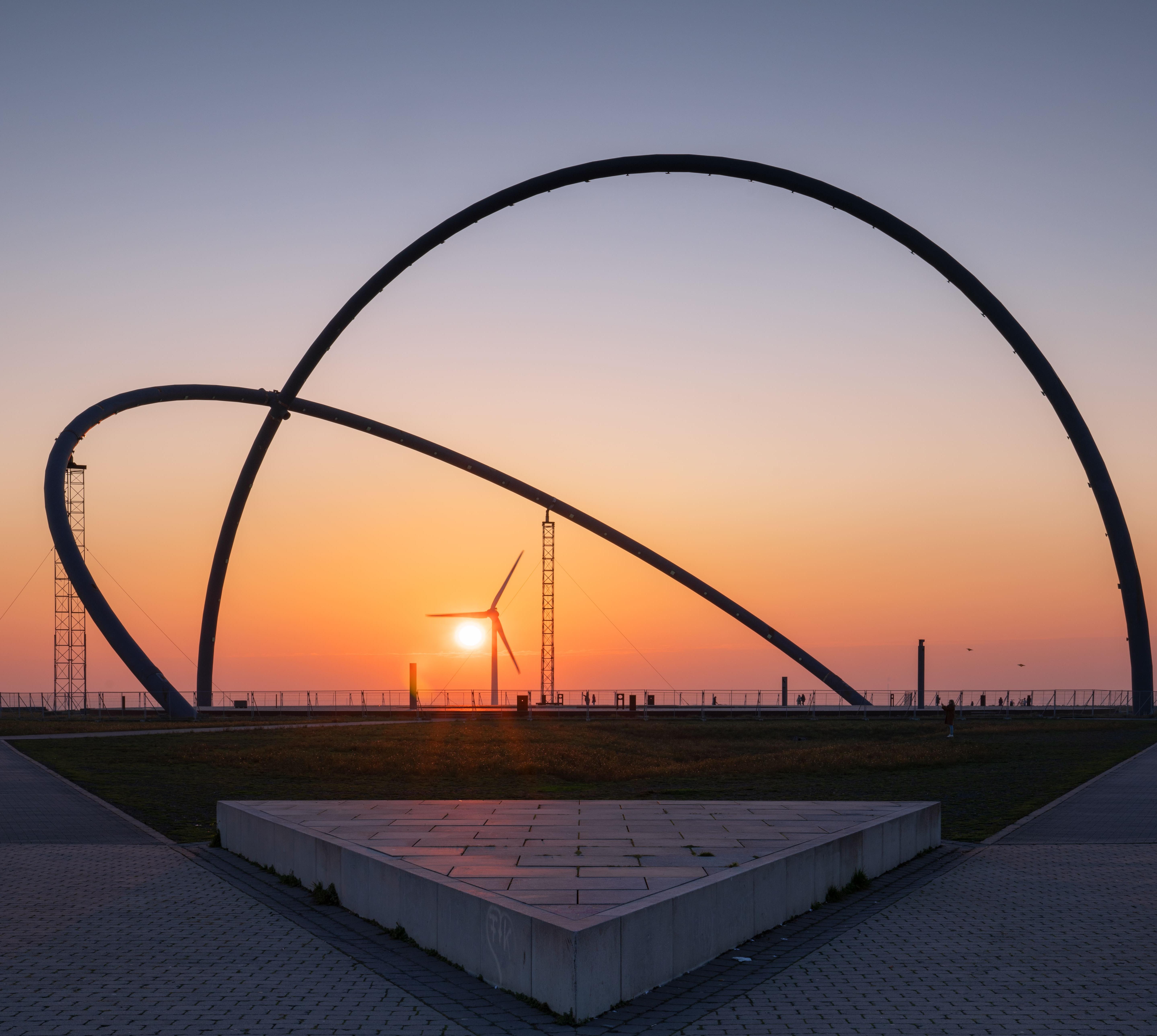 Von der Kohle zur Sonne: Auf der Halde zeigt ein überdimensionaler Zeiger in Form eines Stahlobelisken den Gang der Sonne auf dem Plateau und damit die Zeit an. Jährlich für einen Abend im Sommer verwandelt sich die Halde in einen besonders magischen Ort: Um die 10 000 Menschen pilgern zum Gipfel und feiern beim „Sunset-Picknick“ zu elektronischer Musik in den Sonnenuntergang. Lust auf einen ungewöhnlichen Spaziergang? Dann vertrau dich dem Drachen an. Als Zugang zur Halde dient die expressive feuerrote Drachenbrücke, die auf 165 m Länge die Straße überquert.