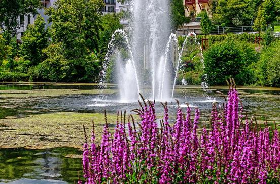 Im Frühling leuchten Osterglocken und Narzissen, im Sommer erfreut das dichte Blätterdach der alten Bäume, im Herbst die farbenfrohe Laubfärbung und die vielen zahmen Eichhörnchen. Wenn es kalt wird, taucht Raureif alles in einen Wintertraum. Der Kurpark ist das ganze Jahr über bezaubernd. Am Eingang des Parks liegt das Stahlbadehaus, ein Bauwerk im klassizistischen Stil. Hier nimmt man die gesundheitsfördernden Kohlensäurebäder. Das Wasser stammt vom Stahlbrunnen (im Landschaftspark gelegen), dessen Wasser – wie der Name bereits andeutet – eine überaus hohe Eisenkonzentration aufweist. Die gepflegten Parkanlagen finden ihre Ergänzung im angrenzenden Landschaftspark.