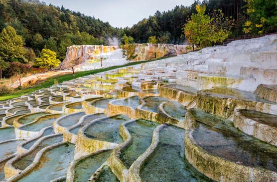 6 km von Eger entfernt lockt in der grünen Tallandschaft des Flüsschens Laskó das Heil- und Thermalbad Egerszalók mit 17 Innen- und Außenpools. Teil der Badelandschaft ist ein 65 Grad warmer, schneeweißer Salzhügel. Direkt beim Bad bietet das Saliris Resort alles, was das Wellnessherz begehrt.