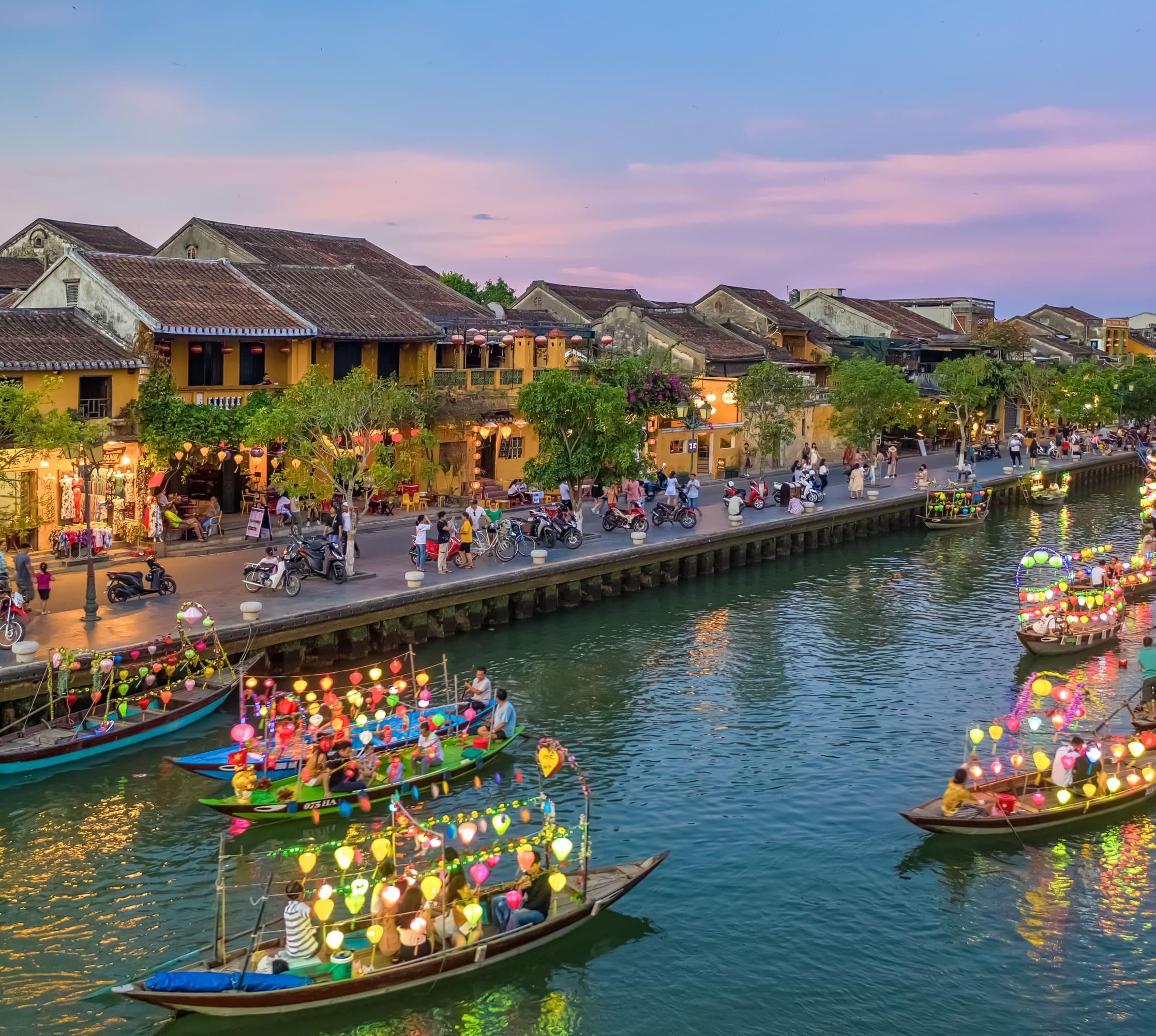 EventsBesonders schön ist die Stadt zur Zeit der Hoi An Legendary Night: Jeden Monat am Vorabend des Vollmondfests (14.Tag des Mondkalenders) erstrahlen die Altstadtgassen im Schein des Mondes, der Lichterketten, Kerzen und farbenprächtigen Lampions. Die Bewohner begehen die Legendary Night in den alten Häusern mit Volksmusik und Lesungen sowie mit kulinarischen Spezialitäten.