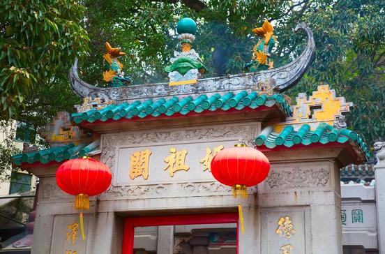 Der älteste Tempel der Stadt. Auf die hier verehrte Schutzpatronin der Schiffer, A-Ma, geht der Name "Macau" zurück (A-Ma-Gao: A-Ma-Bucht). Die unregelmäßige, schattige Anlage besteht aus kleinen Gebäuden an einem steilen Hang über dem Meer. Der Haupttempel befindet sich unten, weiter oben folgt ein Guanyin-Tempel.