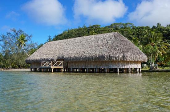 Das Restaurant "Huahine Yacht Club" liegt direkt am Meer. Bei schönem Wetter gibt es die Möglichkeit, draußen zu sitzen. Für Übernachtungen stehen Gästezimmer bereit.