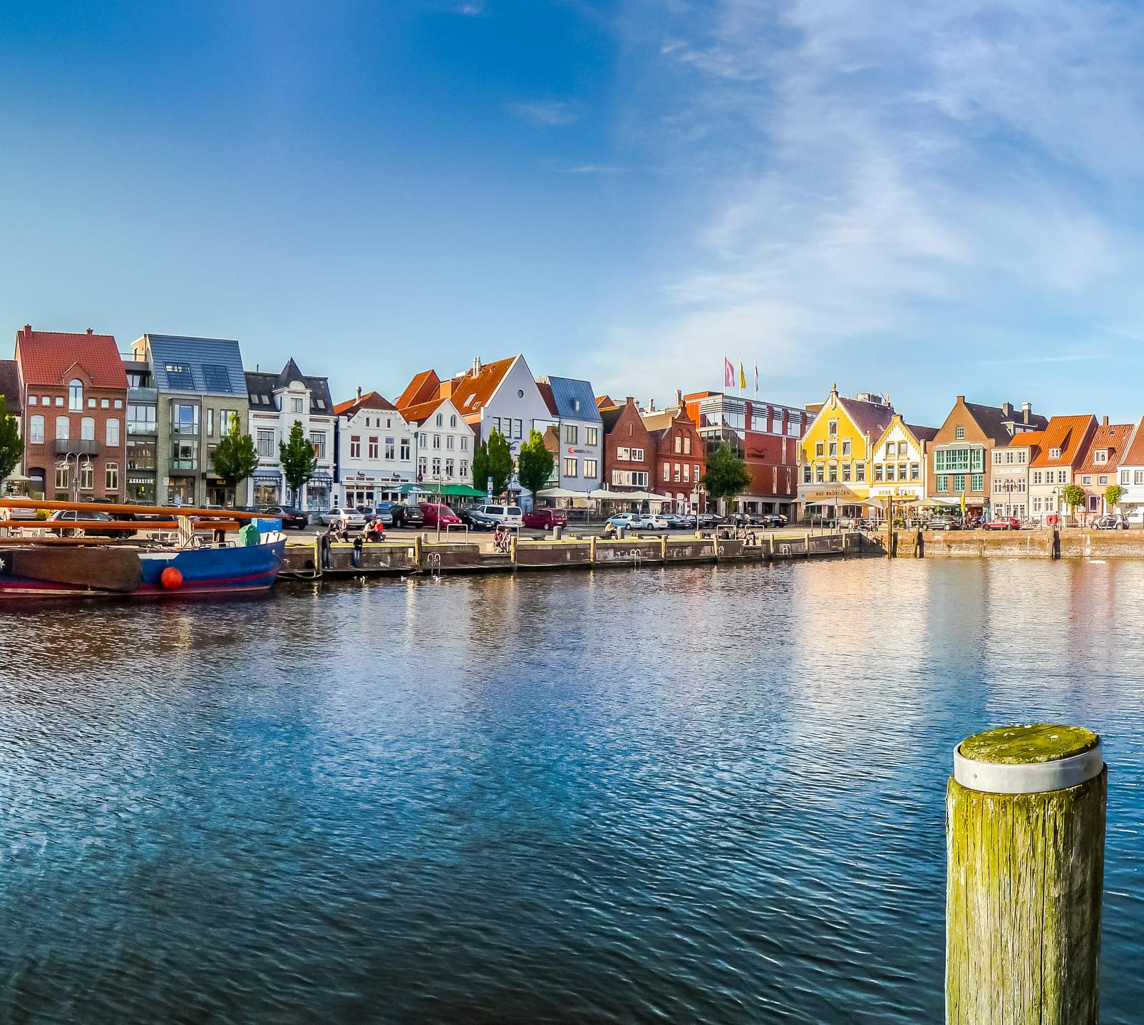 Wenn du durch Husum schlenderst, folgst du zwangsläufig auch den Spuren des berühmtesten Sohns der Stadt, Theodor Storm. Er war es, der Husum als „du graue Stadt am Meer“ beschrieb und sie so weltbekannt machte. Auch wenn die Häuser inzwischen bunt oder aus Backstein sind: Hängen die Wolken tief über der Stadt, dann kannst du die von Storm so eindringlich beschriebene graue Stimmung erleben.