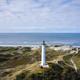 38 m hoch plus 17 m Düne, das ergibt eine Aussicht aus 55 m Höhe, die du nach 149 Stufen genießen darfst. Bequemeren Menschen reicht der Besuch im alten Leuchtturmwärterhaus, im Souvenirshop und im hübschen Café.