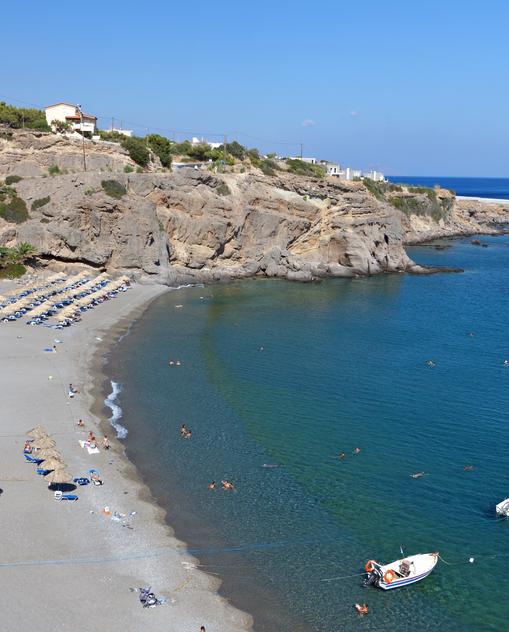 Makrígialos und das im Osten nahtlos anschließende Análipsis bilden zusammen einen recht beschaulichen Badeort, der wegen seines langen, flach abfallenden Sandstrands und viel Tamariskenschatten für Familien mit kleinen Kindern bestens geeignet ist. Im Ortszentrum von Makrígialos liegen in der Nähe der Dorfkirche die frei zugänglichen Grundmauern einer antiken römischen Villa aus dem 1.Jh. Außerdem weist am Ortsende in Richtung Ierápetra ein brauner Wegweiser auf die nahen Überreste einer spätminoischen Villa hin.