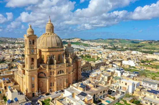 Am Dorfplatz von Xaghra steht die große, der Jungfrau Maria geweihte Pfarrkirche.