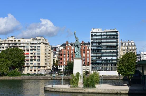 Unweit vom Eiffelturm führt eine Treppe vom Pont de Bir-Hakeim hinab auf eine rund 10 m breite und 1 km lange Insel. Im Gegensatz zu den beiden anderen Pariser Seine-Inseln wurde diese 1825 künstlich angelegt. Hierher kannst du dich retten, wenn du genug vom Pariser Verkehrschaos hast. Während am linken und rechten Seine-Ufer der Verkehr vorbeirauscht, ist die Allée des Cygnes, die sich über die gesamte Insel zieht, das Revier der Flaneure und Jogger. Am anderen Ende der Insel blickt die Freiheitsstatue – das Symbol der Freiheit, das Frankreich einst den USA vermachte – auf die vorbeiziehenden Schiffe: Paris hat nämlich eine Replik der Statue des französischen Bildhauers Auguste Bartholdi. Und nicht nur eine! Weitere Nachbildungen findest du im Musée d’Orsay, im Musée des Arts et Métiers und im Jardin du Luxembourg und an dem Tunnel am Pont d’Alma, wo 1997 Lady Di verunglückte, steht die Flamme der Freiheit in Originalgröße. Das 11,5 m hohe Modell auf der Île aux Cygnes war ein Geschenk der USA an Frankreich anlässlich des 100-jährigen Jubiläums der Französischen Revolution 1889.