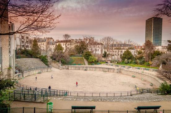 Hinter dem Krankenhaus Saint-Louis unweit des Canal Saint-Martin verbirgt sich eine kleine Oase aus einer anderen Zeit! Die ursprünglichen Gemäuer wurden zu Beginn des 17.Jhs. zur Isolierung der Pestkranken errichtet. Der viereckige Innenhof erinnert dich an die Place des Vosges? Da liegst du nicht ganz falsch: An beiden Orten waren die Architekten von König Henri IV am Werk. Neben Patienten und Krankenhauspersonal entspannen sich Familien aus dem Viertel auf den weitläufigen Wiesen mit den großen, Schatten spendenden Bäumen.