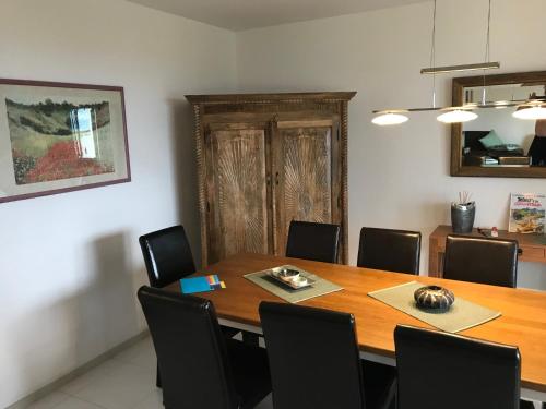Diese Ferienwohnung ist ausgestattet mit einem TV. Die Küchenzeile ist versehen mit einem Kühlschrank und einem Ofen, einer Herdplatte sowie einer Kaffeemaschine.