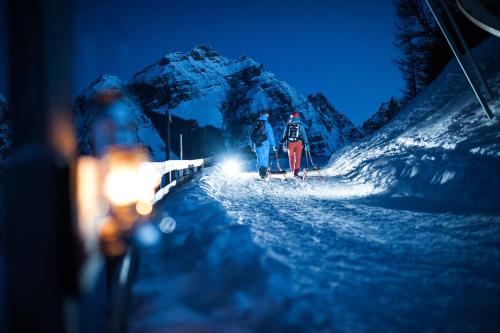 Das Hotelrestaurant serviert Tiroler Spezialitäten und internationale Gerichte. Eine sorgfältig ausgewählte Weinkarte ergänzt das Menü. Bei warmem Wetter lädt der Biergarten zum Essen im Freien ein.