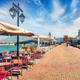 Wie, kein großer Urlaubstrubel in Lefkími? Im größten Ort des Inselsüdens (3500 Ew.) hat der Tourismus fast überhaupt noch nicht Fuß gefasst. Unterkünfte sind rar, einige wenige Tavernen und das In-Café konzentrieren sich auf das Flussufer zu beiden Seiten der Brücke. Einen Kilometer weiter mündet der Chimarós gleich neben einem schönen Sandstrand ins Meer. Da gibt es nur eine Snackbar, Wassersport Fehlanzeige. Der Fluss, einst der Hafen des Städtchens mit kleinen Lagerhäusern und Handwerksbetrieben, ist Lefkimis fotogene Attraktion. Mit Zoom kommt eine andere hinzu: In den ehemaligen Salinen des Ortsteils Alikés stehen zwischen Oktober und Mai Hunderte von rosa Flamingos einbeinig im Wasser. Baden kann man dort auch – in einer ganz flachen Bucht, die ideal für kleine Kinder ist. Die einzige Taverne am Ufer vermietet sogar eine Handvoll Sonnenschirme und -liegen.