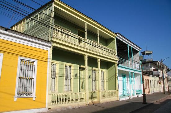 Die Hauptstraße der Altstadt wurde liebevoll restauriert: Auf hölzernen Gehsteigen flaniert man an zweistöckigen Balustradenhäusern entlang. Der Palast eines Salpeterbarons, der Palacio Astoreca, ist heute Museum (unregelmäßig geöffnet). Die Belle Époque beschwört auch die Plaza Prat mit Glockenturm, maurisch inspiriertem Centro Español und Teatro Municipal aus Holz und Stuck.