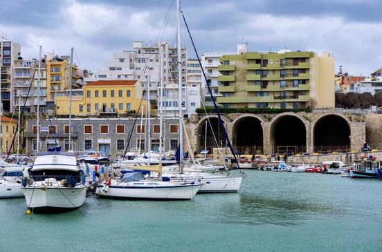 An der Uferstraße nahe dem Kreuzfahrtterminal von Iráklio stehen noch einige der venezianischen Schiffswerften aus dem 16.Jh., in denen die Schiffe während der Winterstürme sicher lagerten und repariert werden konnten.