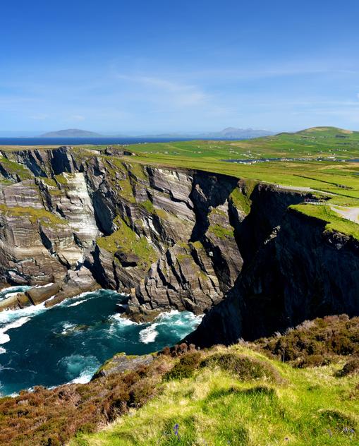 Besonders schön ist Irland im Frühjahr: Dann leuchten riesige Rhododendronbüsche, ausgedehnte Fuchsienhaine und sattgrüne Wiesen. Vogelkolonien brüten an den Steilküsten, der Zauber des Lichts entzieht sich jeder Beschreibung. Die Westküste zieht die meisten Besucher an. Wahnsinn, dieser Blick über die Klippen!