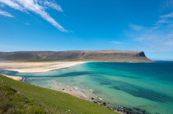 Auf dieser 14 km langen Steilküste befindet sich der westlichste Punkt Islands, und damit auch Europas: der Leuchtturm Bjargtangar. Die Steilküste Látrabjarg fällt an ihrem höchsten Punkt über 440 m senkrecht ab. Tausende von Seevögeln nisten in den Klippen, neben Papageitauchern auch eine riesige Kolonie von Tordalken. Ein Wanderweg führt zu dem malerischen Strand Rauðisandur mit seinem gelblich-roten Muschelsand.
