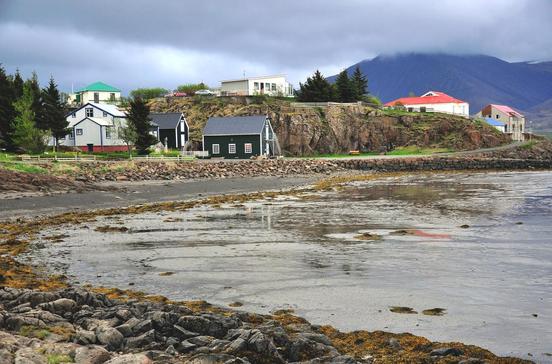 Die Fischindustrie ist der Haupterwerb des größten Orts der Westfjorde, der schon im 16.Jh. ein bedeutender Handelsplatz der Hanse war. Mit der Auflösung des dänischen Handelsmonopols konnte ab dem 18.Jh. daran angeknüpft werden. Einige Gebäude stammen noch aus dieser Zeit. Ein Denkmal am Friedhof erinnert an ertrunkene Seeleute. Ein weiteres Zeichen der Meeresverbundenheit ist der Torbogen aus Walknochen am Park.