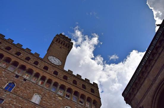 Bequem mit dem Lift gehts hinauf auf den berühmten Turm, den der legendäre Kaiser Friedrich III. noch per Pferd erklomm, um seine Macht zu demonstrieren; Napoleon soll es ihm nachgetan haben. Ein toller Blick über Venedigs Dächer ist garantiert. Das Panorama verschafft sowohl eine erste, sehr hilfreiche Gesamtorientierung als auch ein Gefühl für die einzigartige Lage und Struktur der Lagunenstadt. Ursprünglich im 10.Jh. errichtet und im 12.beträchtlich erhöht, stürzte das fast 100 m hohe Wahrzeichen 1902 ein, wurde aber aus dem ursprünglichen Material umgehend wieder aufgebaut. Während du vor der Kasse Schlange stehst, schau einfach mal hoch zu der um 1540 von Jacopo Sansovino erbauten Loggetta – ein echtes Prachtstück! Unter ihren Arkaden, einem architektonischen Gegenstück zur „Gigantentreppe“ Scala dei Giganti im Dogenpalast vis-à-vis, haben sich einst Venedigs Adlige zum Plausch getroffen.